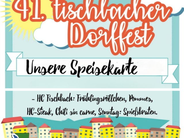 Beim 41. Fischbacher Dorffest am kommenden Wochenende machen die Handballer einiges anders! Die Cocktailbar ist diesmal an allen drei Tagen geöffnet und anstelle der HC-Steaks ist veganes Chili sin Carne im Angebot Alles andere bleibt so wie in den letzten Jahre: Frühlingsrollen Roll/Spießbraten (Sonntags ab 12.00 Uhr)